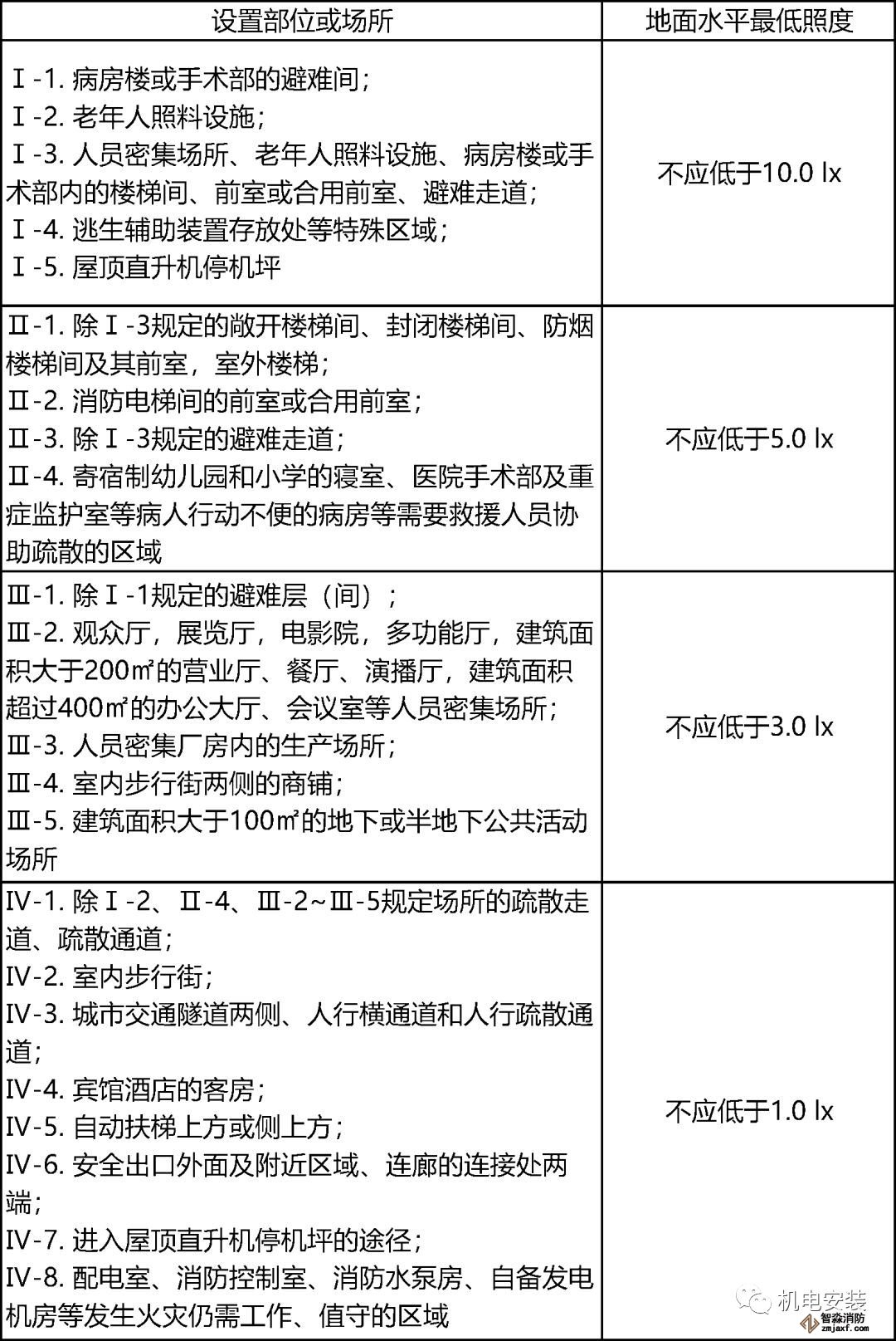 2)對于人員密集場所、避難層(間),不應(yīng)低于3.0lx;對于老年人照料設(shè)施、病房樓或手術(shù)部的避難間,不應(yīng)低于10.0lx。