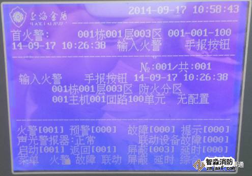 答:從五個方面回答(1.報警類型-火警;2.報警部位-1棟1層3區(qū)防火分區(qū);3.報警時間-2014年9月17日10點26分38秒;4.報警原因-手動報警按鈕報火警;5.處理方法)注:需要從液晶顯示屏上把具體內容代入并表達出來。