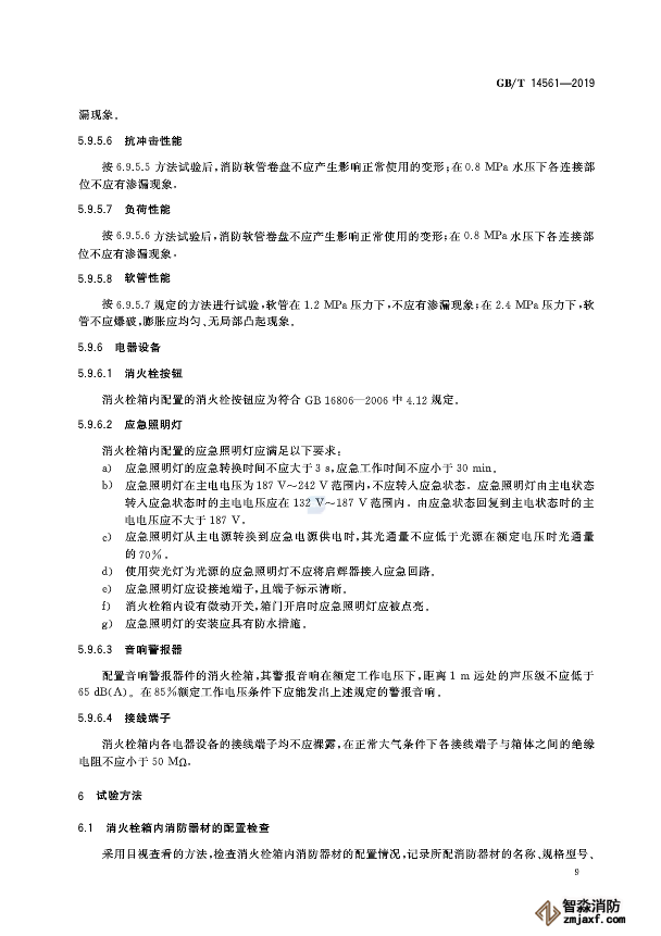 5. 修改了箱內(nèi)配置消防器材的試驗(yàn)方法(見第6章,2003年版的第6章)。