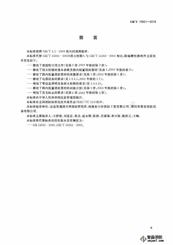 2. 修改了箱內(nèi)配置消防器材的性能要求(見第5章,2003年版的第5章)。