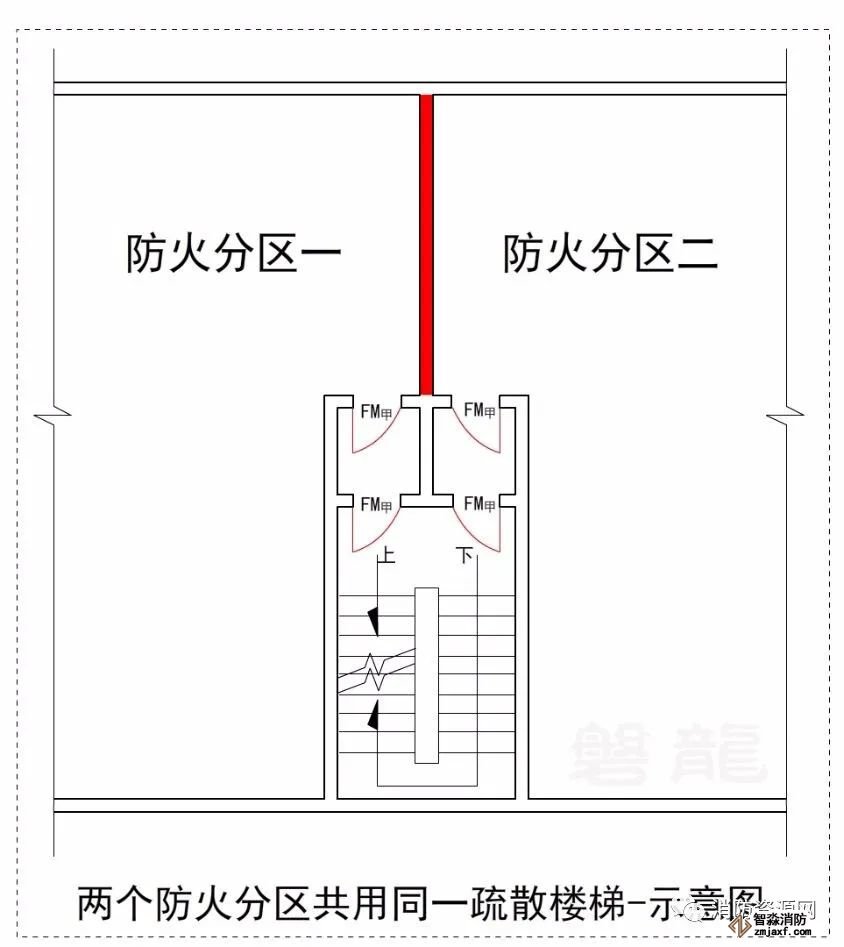 3.3 三個(gè)及以上防火分區(qū)不得共用同一部疏散樓梯。兩個(gè)防火分區(qū)共用疏散樓梯時(shí)應(yīng)分別設(shè)置前室,并應(yīng)符合防煙樓梯間的設(shè)置要求,開(kāi)向前室的門(mén)應(yīng)為甲級(jí)防火門(mén)。