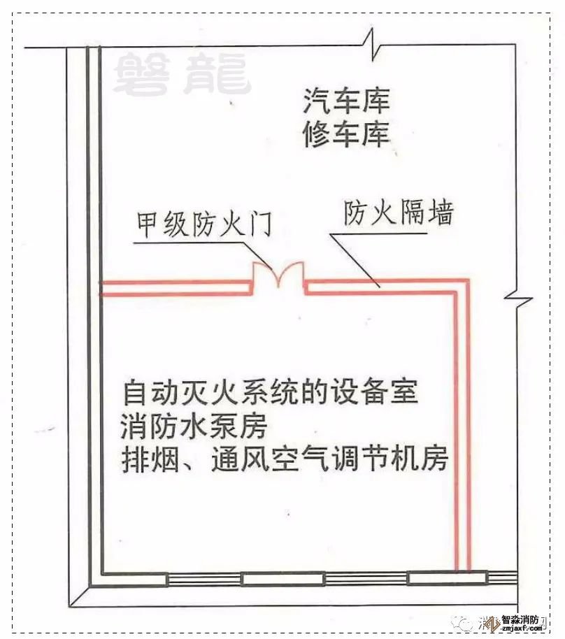 需要說(shuō)明的是,同時(shí)為汽車(chē)庫(kù)和其他功能部分服務(wù)的設(shè)備用房,不應(yīng)劃入汽車(chē)庫(kù)防火分區(qū),應(yīng)采用防火墻和耐火極限不低于2.00h的不燃性樓板與汽車(chē)庫(kù)分隔,且人員不得通過(guò)汽車(chē)庫(kù)疏散,詳見(jiàn)專(zhuān)題:設(shè)備用房與汽車(chē)庫(kù)-疏散關(guān)系及應(yīng)用誤區(qū)!