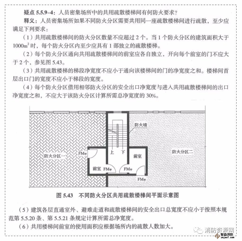 附錄2:“《建筑設(shè)計(jì)防火規(guī)范》GB50016-2014(2018年版)實(shí)施指南”關(guān)于人員密集場(chǎng)所中的共用疏散樓梯間的防火要求: