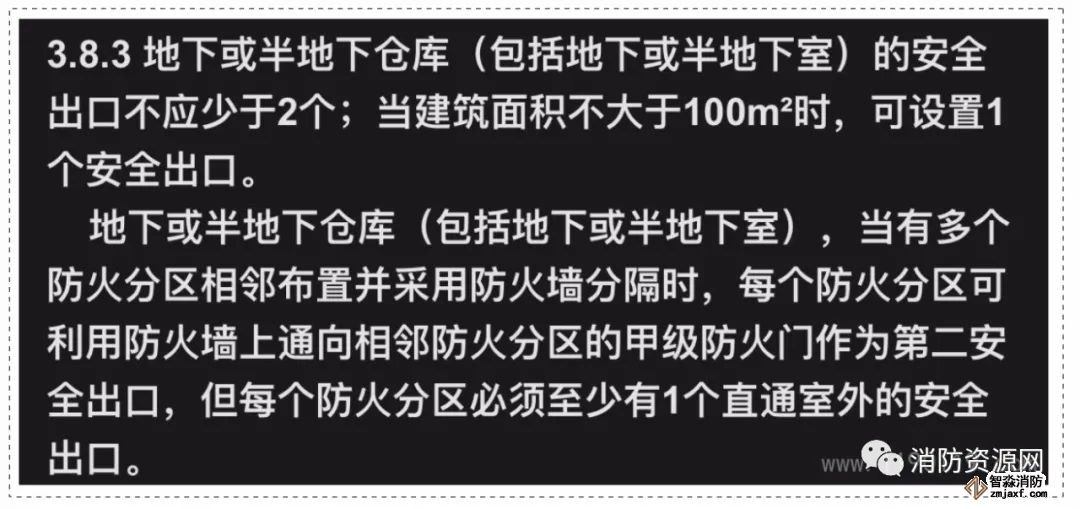 2、設(shè)置于地下或半地下(包括地下或半地下室)的廠房和倉(cāng)庫(kù),相鄰布置的防火分區(qū),可以利用防火墻上通向相鄰防火分區(qū)的甲級(jí)防火門(mén),作為第二安全出口,詳見(jiàn)《建規(guī)》3.7.33.8.3