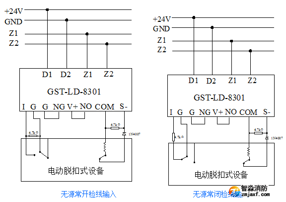Z1、Z2:接火災(zāi)報警控制器信號二總線,無極性