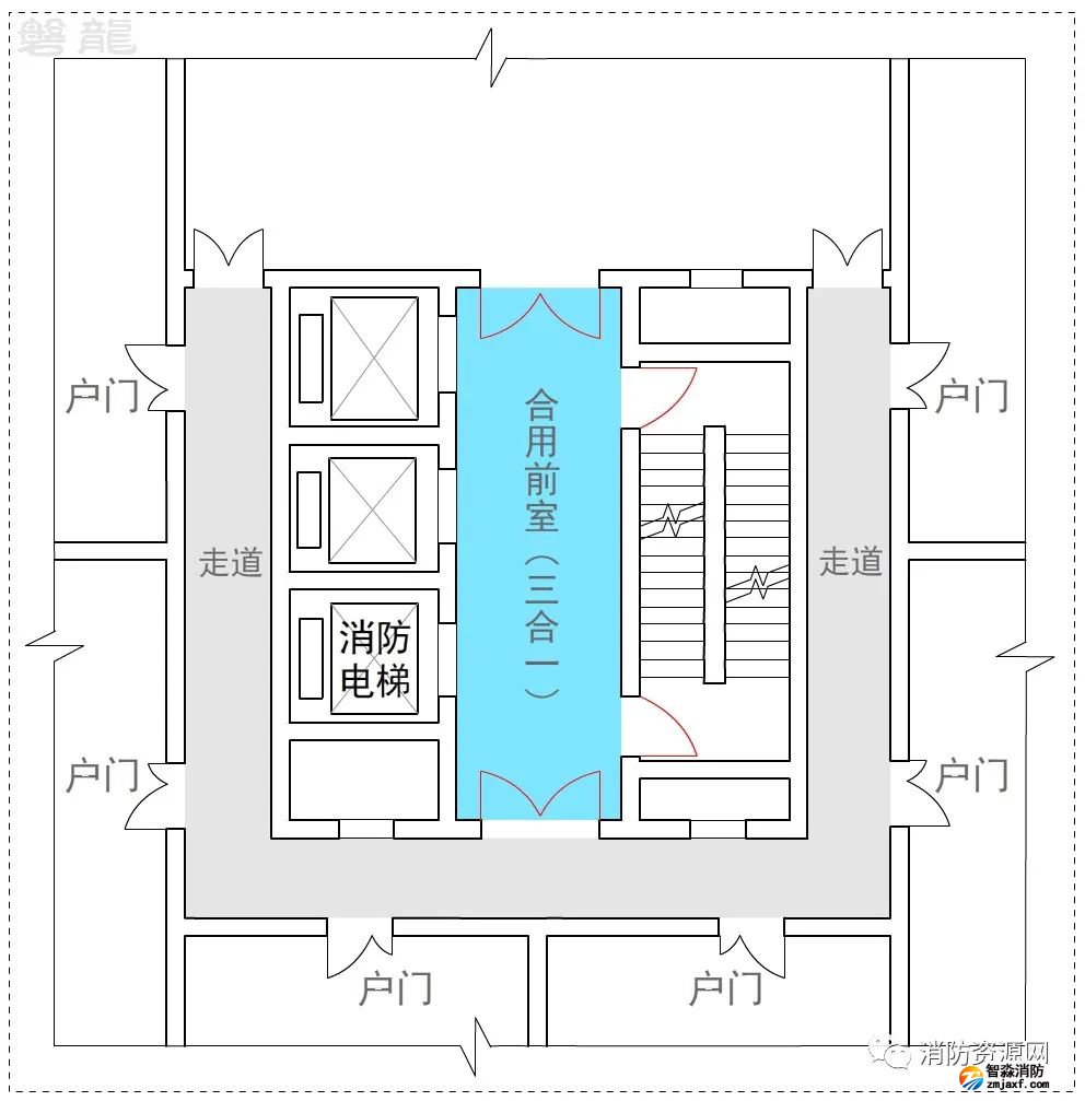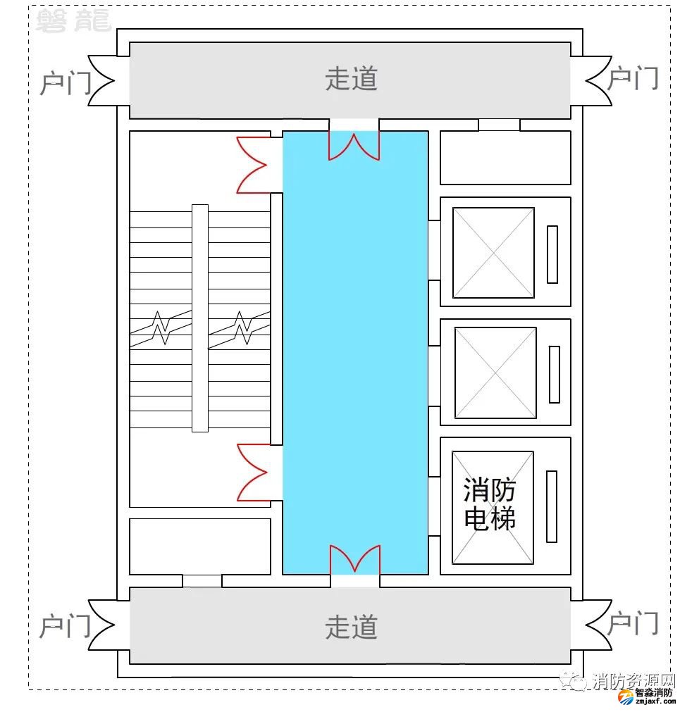 三、公共建筑人員較為繁雜,穿套前室會直接影響消防電梯前室的封閉性能,且人員不一定熟悉現(xiàn)場環(huán)境,封閉的消防電梯前室門可能導(dǎo)致疏散盲區(qū),因此,公共建筑不應(yīng)許可穿套消防電梯前室。