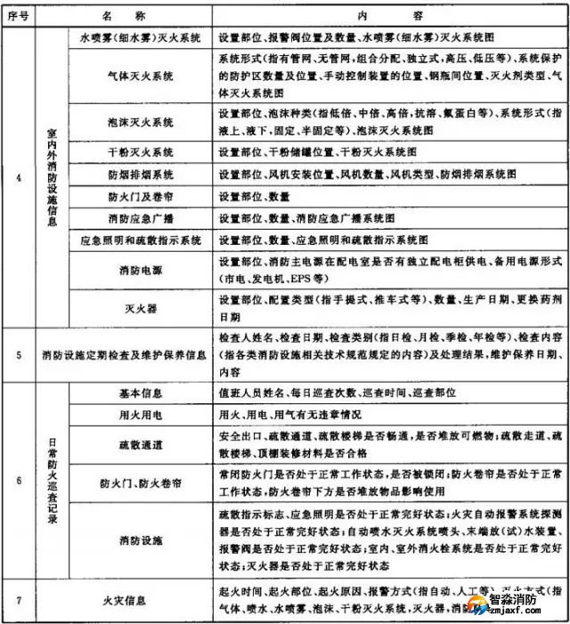 (6)消防設施一覽表,包括消防設施的類型、數(shù)量、狀態(tài)等內容;
