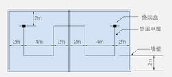 如果感溫電纜敷設(shè)在走廊,過道等長條形狀建筑物時(shí),宜用吊線以直線方式在中間敷設(shè)。吊線應(yīng)有拉緊裝置,每隔2m用固定卡具把電纜固定在吊線上。