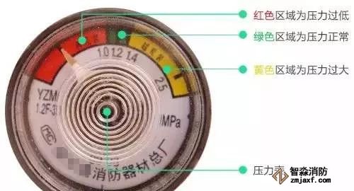 2、儲(chǔ)壓式滅火器壓力符合要求,壓力表指針在綠區(qū);