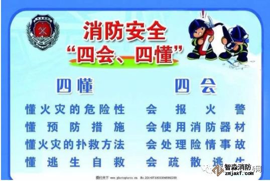 四懂:懂得本崗位的火災(zāi)隱患;懂得預(yù)防火災(zāi)的措施;懂得撲救火災(zāi)的方法;懂得逃生的方法。