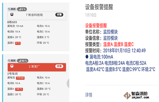 現(xiàn)場(chǎng)配電柜(箱)監(jiān)測(cè)值一旦發(fā)生安全異常,觸發(fā)本地報(bào)警器發(fā)出聲、光報(bào)警,通過云平臺(tái)監(jiān)管系統(tǒng)手機(jī)APP、Web客戶端同步發(fā)出報(bào)警提示,多種方式提醒值班人員檢修。