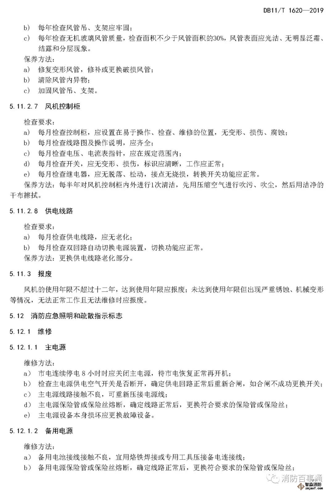 5.11.3 風機的使用年限不超過十二年,達到使用年限應報廢;未達到使用年限但出現嚴重銹蝕、機械變形等情況,無法正常工作且無法維修時應報廢。