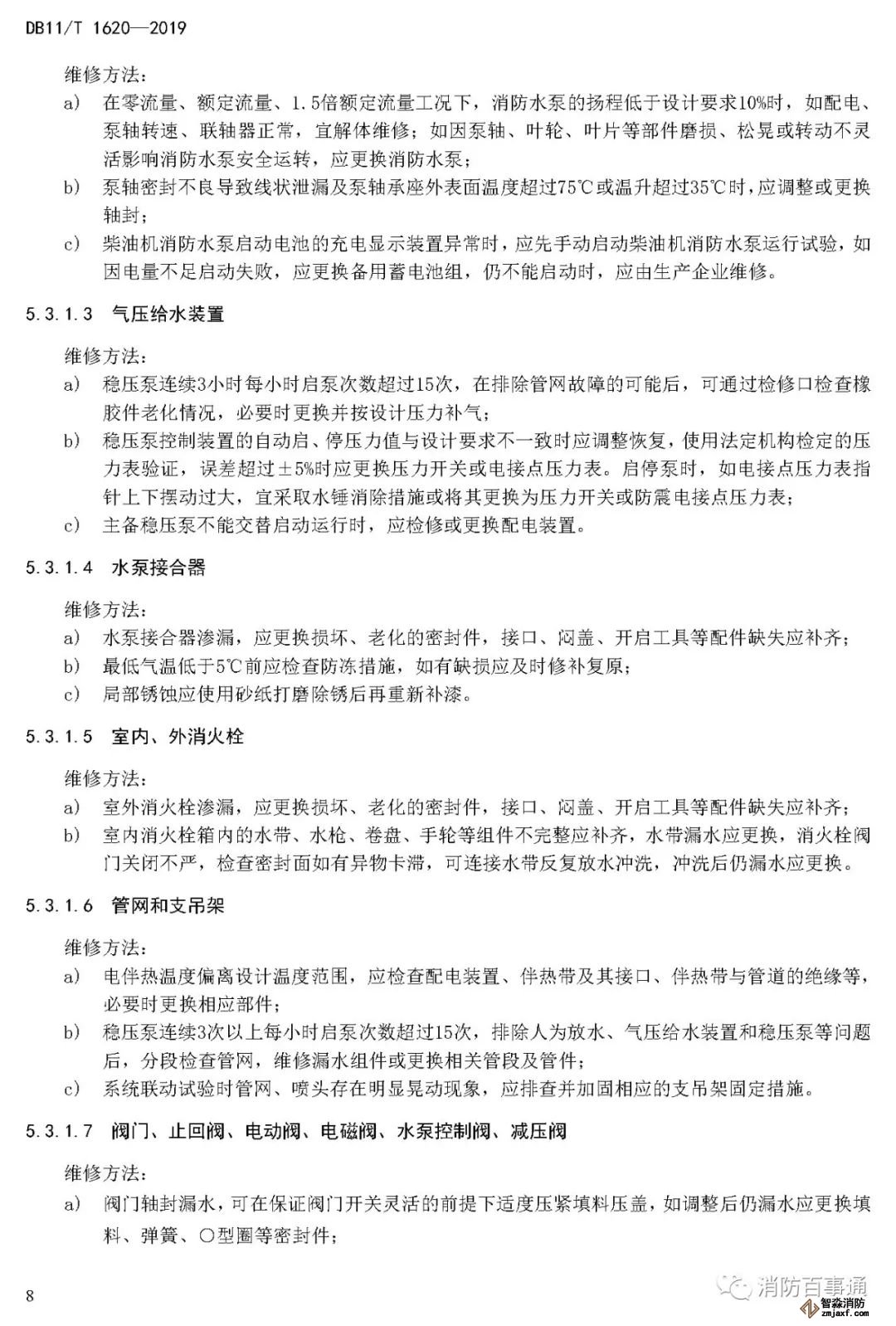 5.3.3.6 閥門、止回閥、電動閥、電磁閥、水泵控制閥出現嚴重銹蝕、明顯機械性損傷或維修后仍漏水的應報廢。