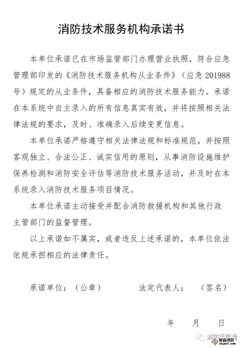 企業(yè)法定代表人在《消防技術(shù)服務(wù)機(jī)構(gòu)從業(yè)承諾書》簽字并加蓋本單位公章,上傳本系統(tǒng)。