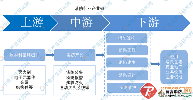 消防既包括“消”,又包括“防”。消防產(chǎn)業(yè)鏈條長(zhǎng),主要分為消防設(shè)計(jì)、消防建審、消防產(chǎn)品、消防工程、消防驗(yàn)收、消防維保等環(huán)節(jié)。消防產(chǎn)品是整個(gè)產(chǎn)業(yè)的核心環(huán)節(jié)。消防產(chǎn)品主要包括:消防裝備、消防報(bào)警、建筑防火、自動(dòng)滅火系統(tǒng)等。