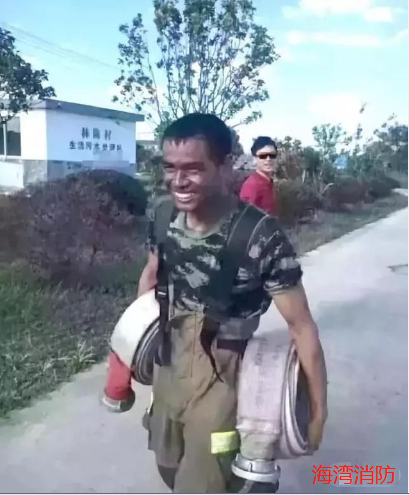 這是溫州蒼南消防戰(zhàn)士張曉方連續(xù)撲滅了六場火,在歸隊路上,他露出了開心的笑容。