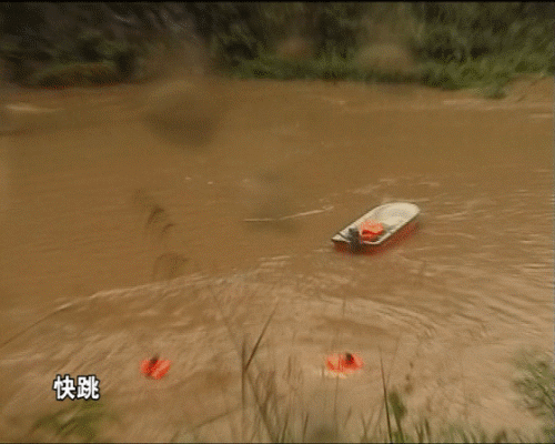 突然他發(fā)現(xiàn)在漂流點淺灘旁