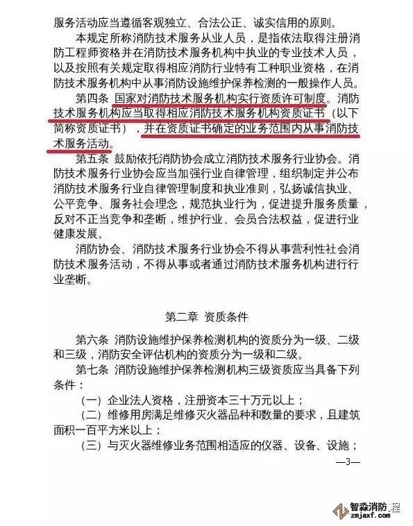 “ 取消消防設(shè)施維護(hù)保養(yǎng)檢測(cè)、消防安全評(píng)估機(jī)構(gòu)資質(zhì)許可制度,企業(yè)辦理營(yíng)業(yè)執(zhí)照后即可開展經(jīng)營(yíng)活動(dòng)。”這是征求意見稿非常重要的一條。