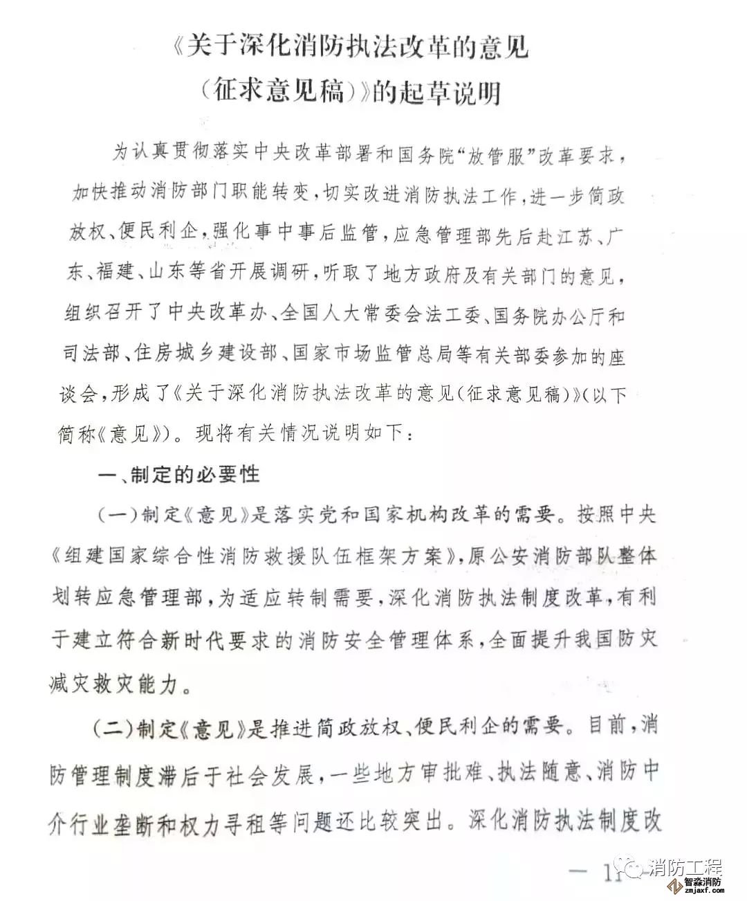 該征求意見稿提出“消防技術(shù)服務(wù)結(jié)論不再作為消防審批的前置條件”。消防審批不是已經(jīng)劃轉(zhuǎn)到住建部門了嗎,怎么應(yīng)急管理部提關(guān)于“消防審批”的事情。原來(lái),參加部位座談會(huì)的有“中央改革辦......住房城鄉(xiāng)建設(shè)部......”。推測(cè):可能在這個(gè)會(huì)上,征求了住房城鄉(xiāng)建設(shè)部關(guān)于工程建設(shè)的消防審批意見,住建部本著改革的要求,研究同意這個(gè)提法(做法)——“消防技術(shù)服務(wù)結(jié)論不再作為消防審批的前置條件”。