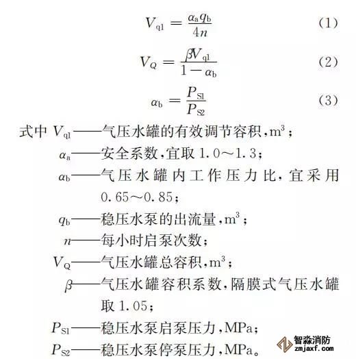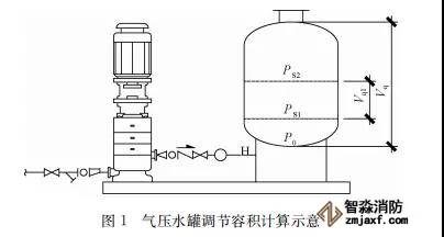 臨時高壓消防給水系統(tǒng)一般均應設置高位消防水箱(除符合規(guī)范規(guī)定可不設的情形外),且對其設置高度有一定要求。日本規(guī)范規(guī)定自動噴水滅火系統(tǒng)屋頂消防水箱最不利的最低供水壓力為0.15 MPa,美國、英國規(guī)范則要求0.10 MPa。我國1987年版和2006年版“建規(guī)”對比均沒有規(guī)定,只在條文中要求重力自流的消防水箱應設置在建筑的最高部位。1982年版《高層民用建筑設計規(guī)范》(以下簡稱“高規(guī)”)首次提出屋頂消防水箱應滿足最不利消火栓的靜水壓力,但沒有提出設計參數(shù),1995年版“高規(guī)”做了具體規(guī)定。國標圖集98S205編制目的是為解決臨時高壓消防給水系統(tǒng)高位消防水箱設置高度滿足不了系統(tǒng)最不利點靜水壓力時應設增壓設施的要求,其為消防專用的增壓穩(wěn)壓設備的主要功能只是火災初期時、消防主泵啟動前,確保具有足夠消防壓力的30 s儲水量進行初期火災撲救,直至消防主泵全負荷啟動運行。這里更多的還是強調增壓的概念,設備類似于氣壓供水,發(fā)揮主要作用的是氣壓水罐,穩(wěn)壓水泵的作用是在3 min內,補足氣壓水罐內實際穩(wěn)壓水容積。利用氣壓水罐所設定的P1、P2、PS1和PS2運行壓力來控制穩(wěn)壓泵運行工況。P1為根據(jù)計算求得消火栓系統(tǒng)或自動噴水滅火系統(tǒng)中最不利點所需的消防壓力作為氣壓水罐的充氣壓力。平時管道系統(tǒng)如有滲漏泄壓等情況,控制穩(wěn)壓水泵不斷補水穩(wěn)壓,在PS1、PS2(啟動-停止)反復運行,一旦有火情,管道系統(tǒng)大量缺水,造成PS1下降(PS1→P2),降至P2時,立即啟動消防主泵。