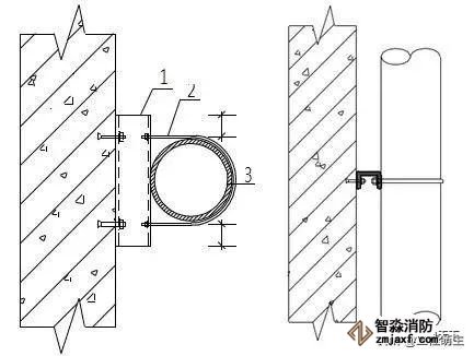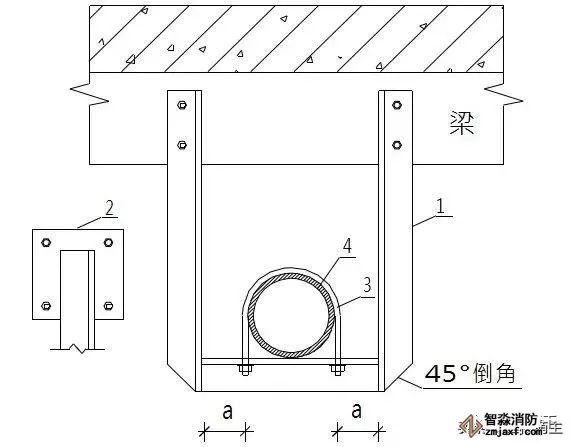 1.角鋼 2.連接板(10mm,做為承重支架,當使用80以上的角鋼時采用) 3.管碼 4.管道