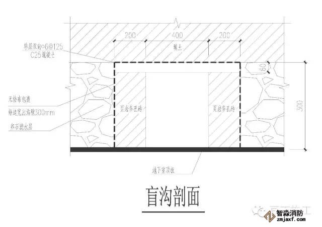 5、在地下室周邊設置與場地內(nèi)盲溝相連的排水通道,最終將水排入城市雨