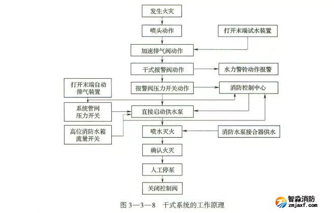 組成:閉式噴頭、管網(wǎng)、干式報(bào)警閥、充氣設(shè)備、報(bào)警裝置和供水設(shè)備。