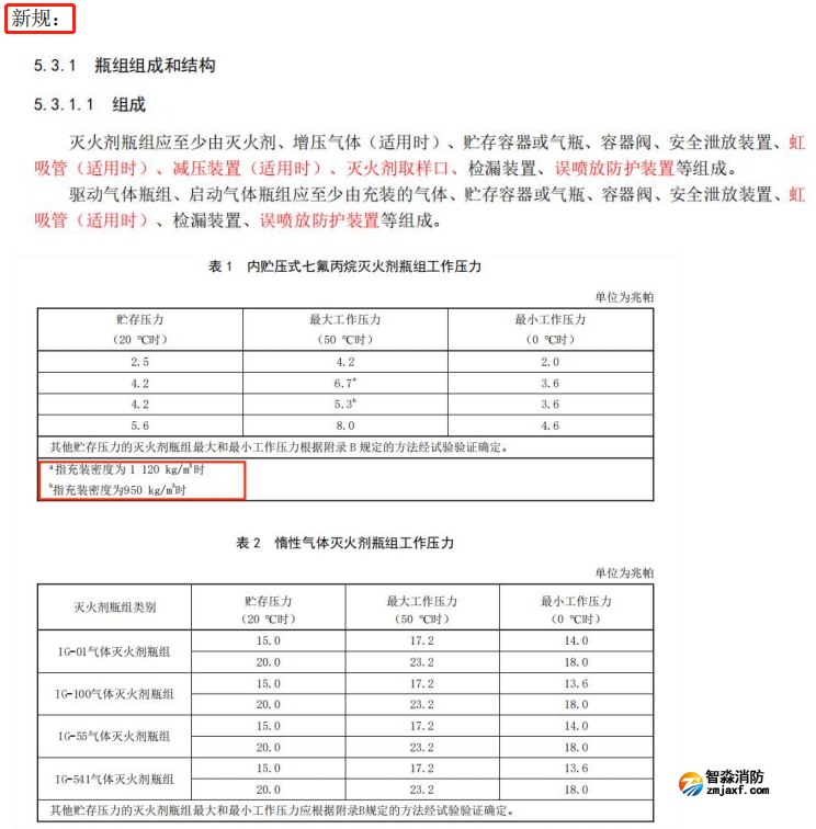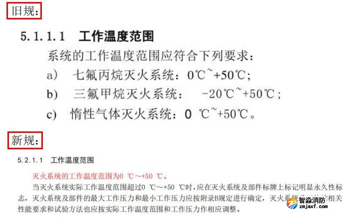 五、更改了滅火系統(tǒng)的工作溫度范圍及工作壓力要求