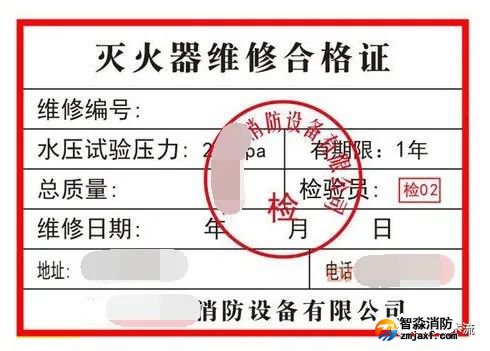 維修合格證應(yīng)采用不加熱的方法固定在滅火器的氣瓶(筒體)上,但不應(yīng)覆蓋原滅火器上的銘牌標(biāo)志。將其從滅火器的氣瓶(筒體)上去除時,應(yīng)自行破損。